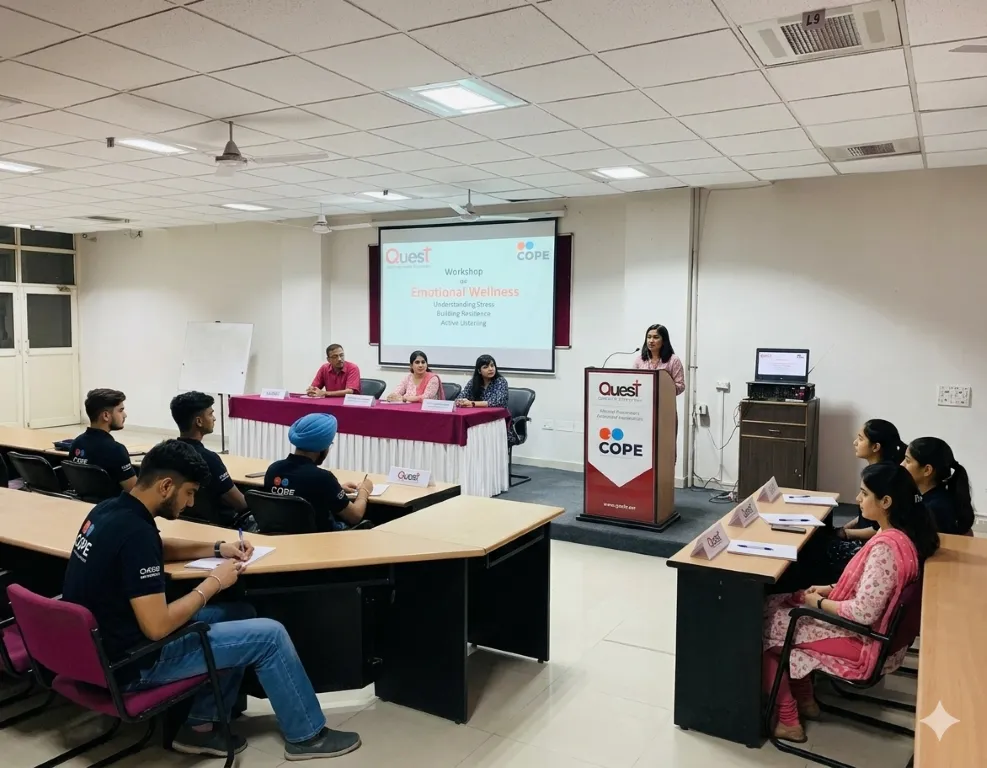 At Quest, education goes beyond academics. We place strong emphasis on mental well-being, emotional intelligence, and personal development. Through our collaboration with MPower, an initiative of the Aditya Birla Group, students receive access to professional mental health counselling and support services. The COPE (Counselling and Outreach for Peer Empowerment) initiative further strengthens this ecosystem by creating a student-led community that promotes awareness, empathy, and open dialogue around mental health. Our goal is to nurture emotionally resilient, confident, and socially responsible individuals prepared to succeed in both their personal and professional lives.
