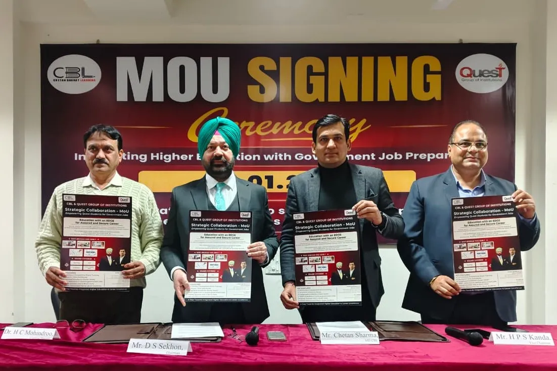 To empower students with assured and secure career pathways, we have signed a strategic MoU with Chetan Bharat Learning (CBL), one of North India’s leading competitive exam training academies, to offer premier on-campus coaching for Government job aspirants. This collaboration enables students to seamlessly balance their academic studies with focused preparation for prestigious competitive examinations such as Civil Services, Banking, Railways, SSC, and other Government services. Through expert faculty, comprehensive study modules, regular assessments, and guided mentoring, students receive a distinct competitive edge, enhancing their confidence, competence, and success rate.